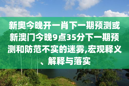 新奧今晚開一肖下一期預測或新澳門今晚9點35分下一期預測:宏觀釋義、解釋與落實
