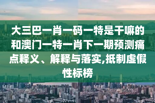 關于揭露“大三巴一肖一碼一特”及澳門一特一肖下一期預測等相關內容的痛點釋義、解釋與落實,以及抵制虛假性標榜的探討