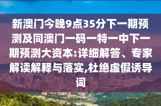 新澳門今晚9點35分下一期預測及同澳門一碼一特一中下一期預測大資本:詳細解答、專家解讀解釋與落實,杜絕虛假誘導詞