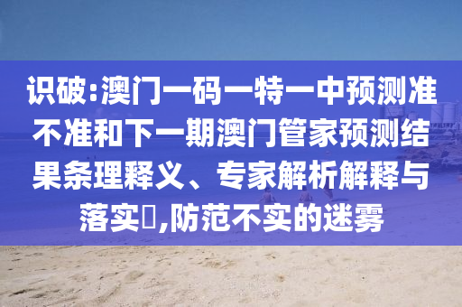 隨著社會的快速發(fā)展和信息時代的到來,各種預測和猜測在各個領域層出不窮,在游戲領域,尤其是澳門游戲業(yè)中,關于一碼一特一中的預測備受關注,我們必須清醒地認識到,任何預測結果都帶有不確定性,需要警惕其中可能存在的虛假宣傳,本文將圍繞關鍵詞“識破”、“澳門一碼一特一中預測準不準”和“防范不實的迷霧”進行條理釋義、專家解析解釋,并探討如何落實相關措施。