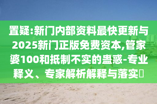 置疑:新門內部資料最快更新與2025新門正版免費資本,管家婆100和抵制不實的蠱惑-專業釋義、專家解析解釋與落實?