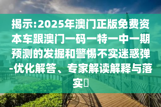揭示:2025年澳門(mén)正版免費(fèi)資本車(chē)跟澳門(mén)一碼一特一中一期預(yù)測(cè)的發(fā)掘和警惕不實(shí)迷惑彈-優(yōu)化解答、專(zhuān)家解讀解釋與落實(shí)?