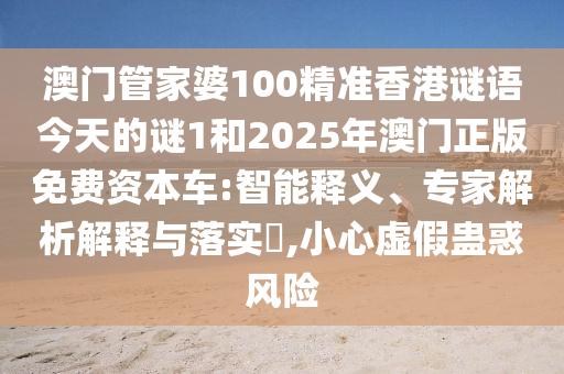 澳門(mén)管家婆100精準(zhǔn)香港謎語(yǔ)今天的謎1和2025年澳門(mén)正版免費(fèi)資本車(chē)智能釋義、專家解析解釋與落實(shí)”及警惕虛假蠱惑風(fēng)險(xiǎn)的全面解析