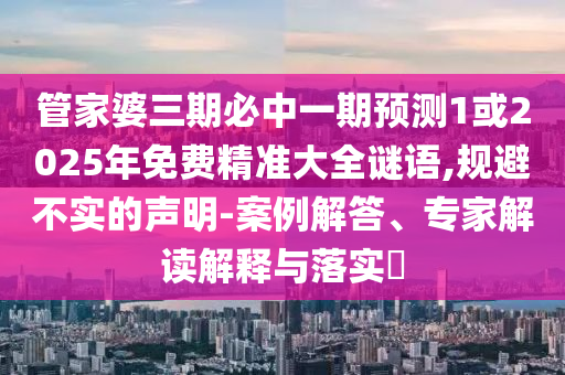 管家婆三期必中一期預測1或2025年免費精準大全謎語,規避不實的聲明-案例解答、專家解讀解釋與落實?