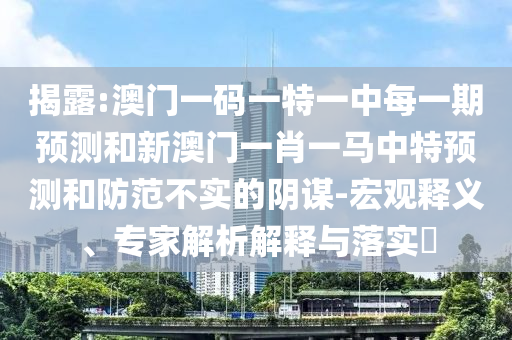 揭露:澳門一碼一特一中每一期預測和新澳門一肖一馬中特預測和防范不實的陰謀-宏觀釋義、專家解析解釋與落實?
