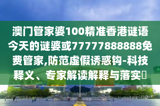 澳門管家婆100精準香港謎語今天的謎婆或77777888888免費管家,防范虛假誘惑鉤-科技釋義、專家解讀解釋與落實?