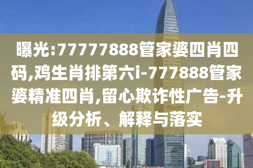 摘要:近期曝光了關于77777888管家婆四肖四碼和雞生肖排第六的廣告,提醒公眾注意欺詐風險。這些廣告聲稱提供精準預測,但很可能是欺詐行為。本文對此進行了升級分析,解釋這類廣告的本質和潛在風險,呼吁公眾保持警惕,同時呼吁相關部門落實打擊欺詐性廣告的措施。