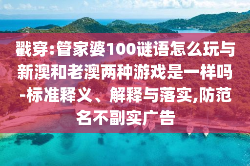 關于戳穿“管家婆100謎語”游戲真相與“新澳和老澳兩種游戲是否一樣”的標準釋義、解釋與落實,以及防范名不副實廣告的提醒