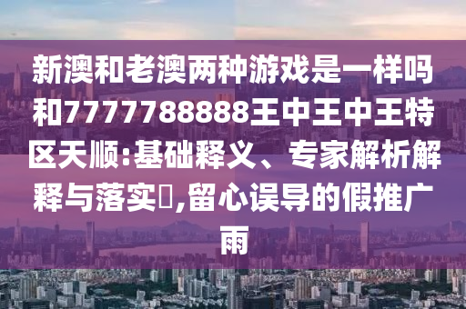 關(guān)于新澳和老澳兩種游戲是否一樣,以及“7777788888王中王中王特區(qū)天順”等相關(guān)關(guān)鍵詞的基礎(chǔ)釋義、專家解析解釋與落實,以及對于公眾可能遭遇的虛假宣傳的警惕提示,以下為您詳細(xì)闡述。