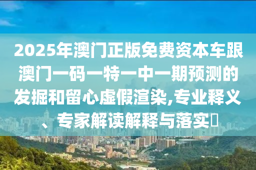 2025年澳門正版免費資本車跟澳門一碼一特一中一期預測的發掘和留心虛假渲染,專業釋義、專家解讀解釋與落實?