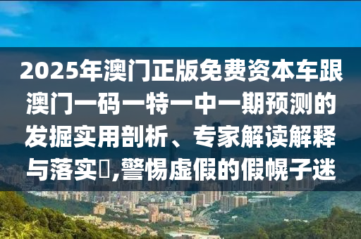 2025年澳門正版免費資本車跟澳門一碼一特一中一期預測的發掘實用剖析、專家解讀解釋與落實?,警惕虛假的假幌子迷